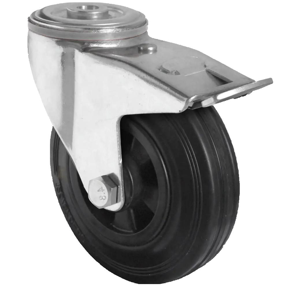 CASCOO Rückenlochlenkrolle mit Totalfeststeller - Serie P4S4 - Vollgummi-Rad - Rad-Ø 80 bis 200 mm - Bauhöhe 104 bis 228 mm - Tragkraft 70 bis 205 kg - Preis per Stück