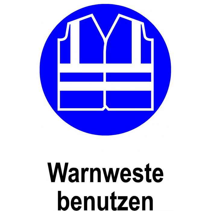 - das Gebotsschild "Warnweste benutzen" ist im Innen- und Außenbereich einsetzbar
