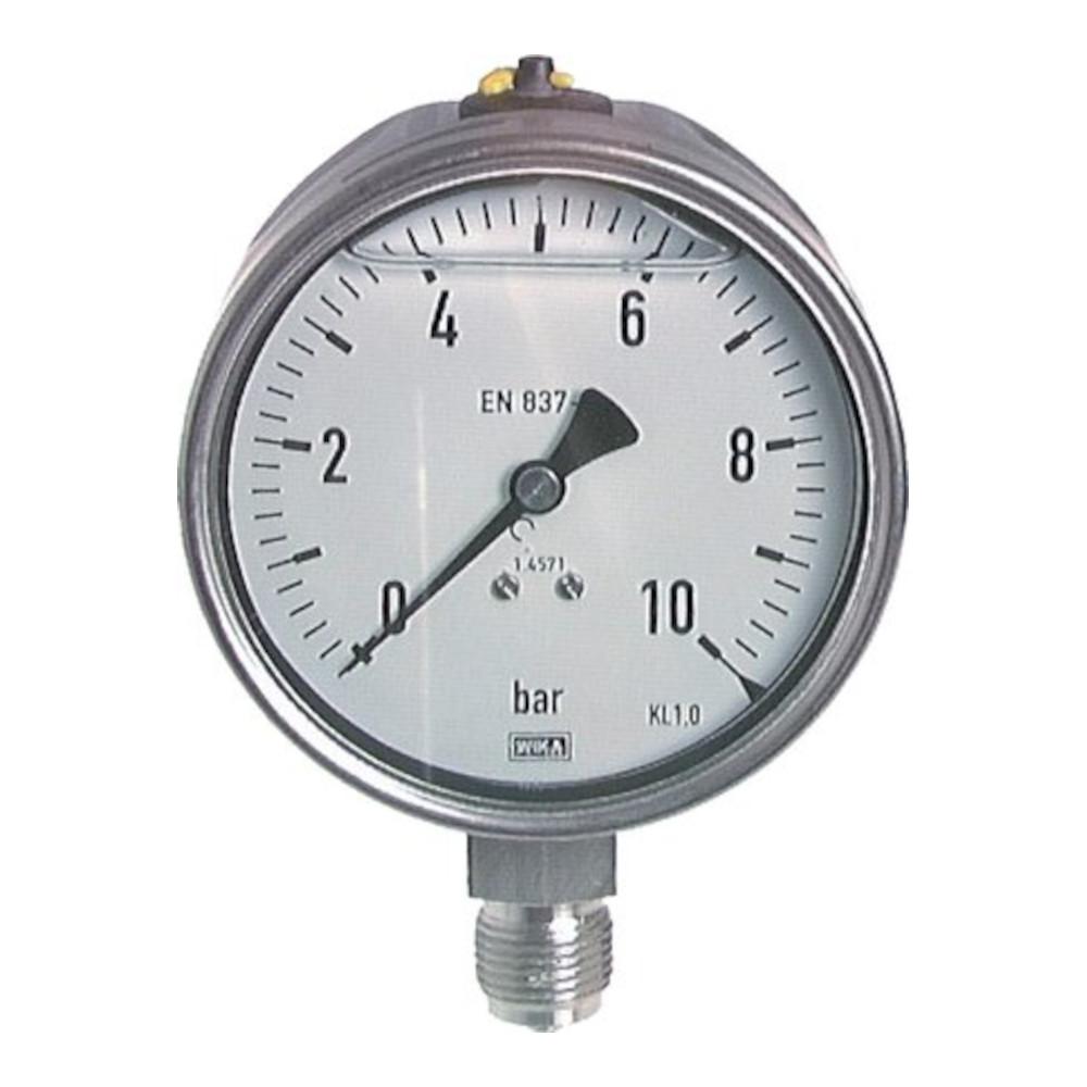 - Das robuste Edelstahl-Gehäuse und Sicherheitsglas machen das Manometer widerstandsfähig gegen chemische Belastungen und Umwelteinflüsse.