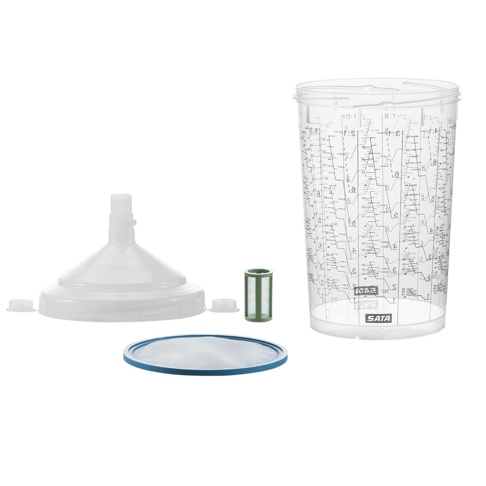- Das SATA RPS besteht aus nur drei Teilen, einem Becher, dem passenden Deckel und wahlweise einem Flach- oder Stecksieb, was die Handhabung sehr einfach macht und einen schnellen und rationellen Farbwechsel ermöglicht.