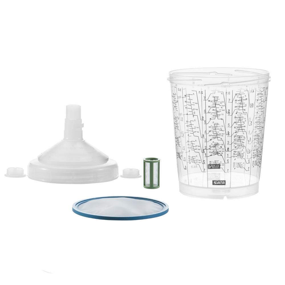 - Der SATA RPS (Rapid Preparation System) Mehrzweck-Becher wird sowohl zum Anmischen der Farbe, als auch zum Lackieren, sowie zum Nachfüllen und Aufbewahren der Farbe eingesetzt.