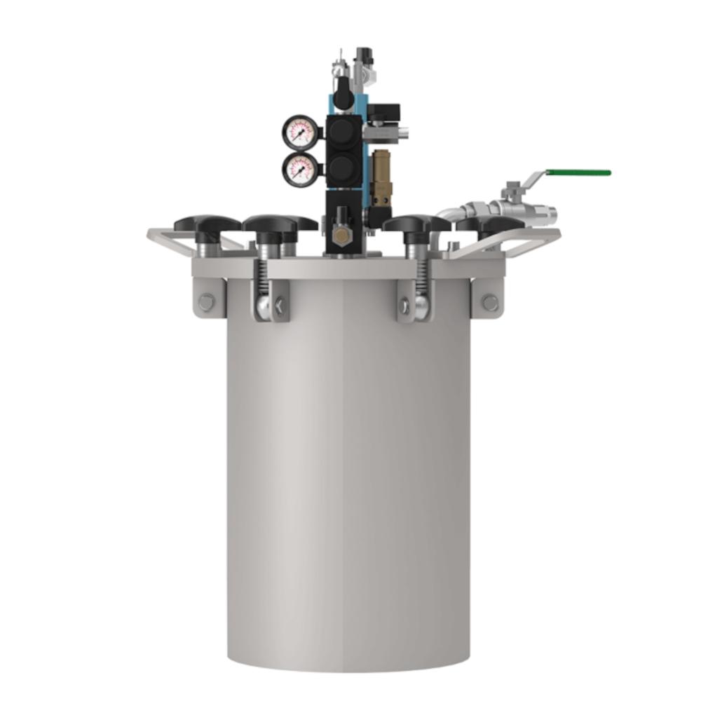 - Der SATA Materialdruckbehälter 22 mit Doppeldruckminderer und Druckluftrührwerk mit Getriebe ist ein hochwertiges Druckgefäß aus Edelstahl zur gleichmäßigen und pulsationsfreien Verarbeitung von Beschichtungsmaterialien. Er ermöglicht eine konstante Materialversorgung ohne Austreten von Dämpfen oder Gasen und sorgt damit für sichere und saubere Arbeitsbedingungen. Der integrierte Doppeldruckminderer erlaubt die getrennte und präzise Einstellung von Material- und Luftdruck, während das Druckluftrührwerk mit Getriebe eine kontinuierliche Durchmischung auch bei hochviskosen oder sedimentierenden Materialien gewährleistet. Der Behälter ist universell einsetzbar und mit allen materialgespeisten SATA Lackierpistolen kompatibel.