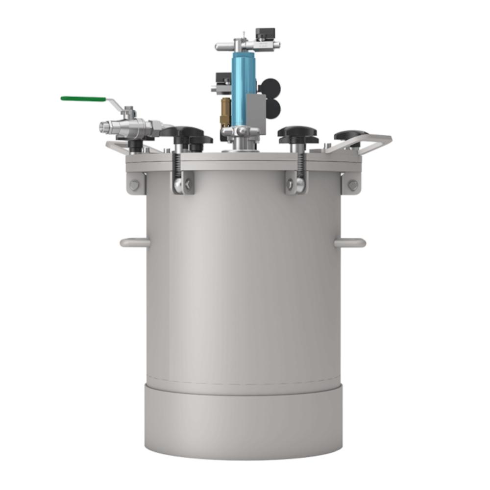 - Der SATA Materialdruckbehälter 45 mit Doppeldruckminderer und Druckluftrührwerk mit Getriebe ist für den Einsatz bei der Verarbeitung großer Materialmengen konzipiert. Der Druckbehälter ermöglicht eine gleichmäßige, pulsationsfreie Materialförderung und sorgt für konstante Beschichtungsergebnisse auch bei anspruchsvollen Anwendungen.