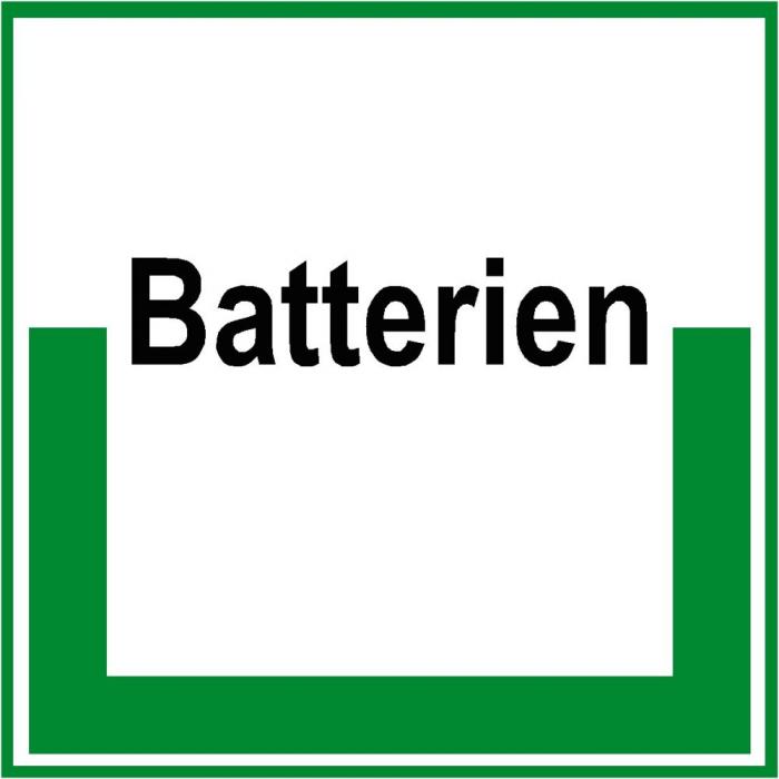 - das Umweltschild "Sammelbehälter für Batterien" ist im Innen- und Außenbereich einsetzbar