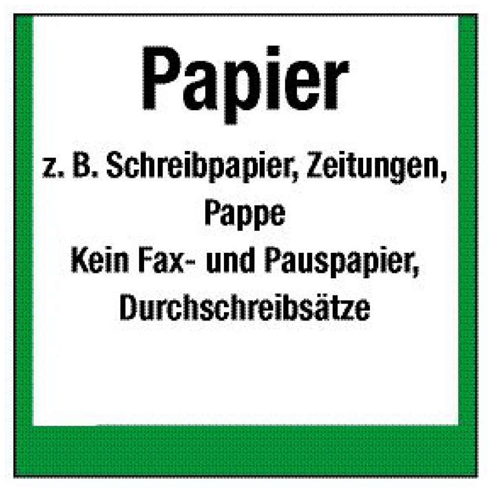 • das Umweltschild "Sammelbehälter für Papier" ist im Innen- und Außenbereich einsetzbar