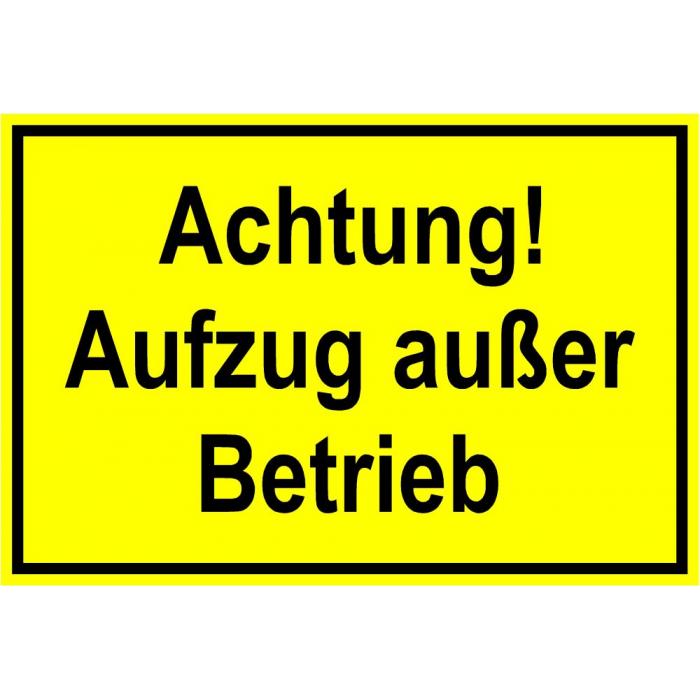 - das Warnschild "Achtung! Aufzug außer Betrieb" ist im Innen- und Außenbereich einsetzbar