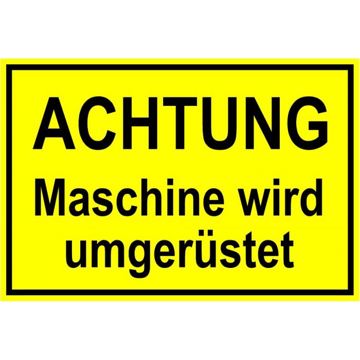- das Warnschild "Achtung Maschine wird umgerüstet" ist im Innen- und Außenbereich einsetzbar