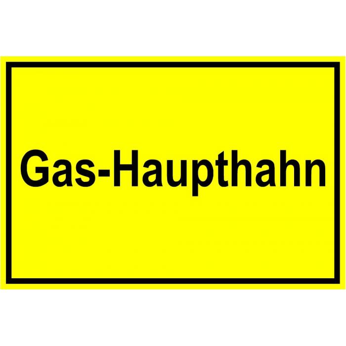 - das Warnschild "Gas Haupthahn" ist im Innen- und Außenbereich einsetzbar