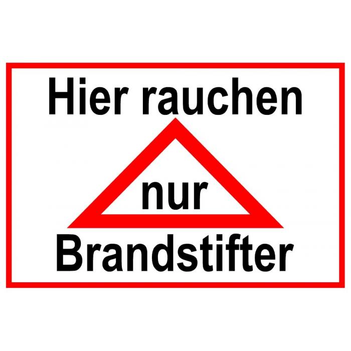 - das Warnschild "Hier rauchen nur Brandstifter" ist im Innen- und Außenbereich einsetzbar