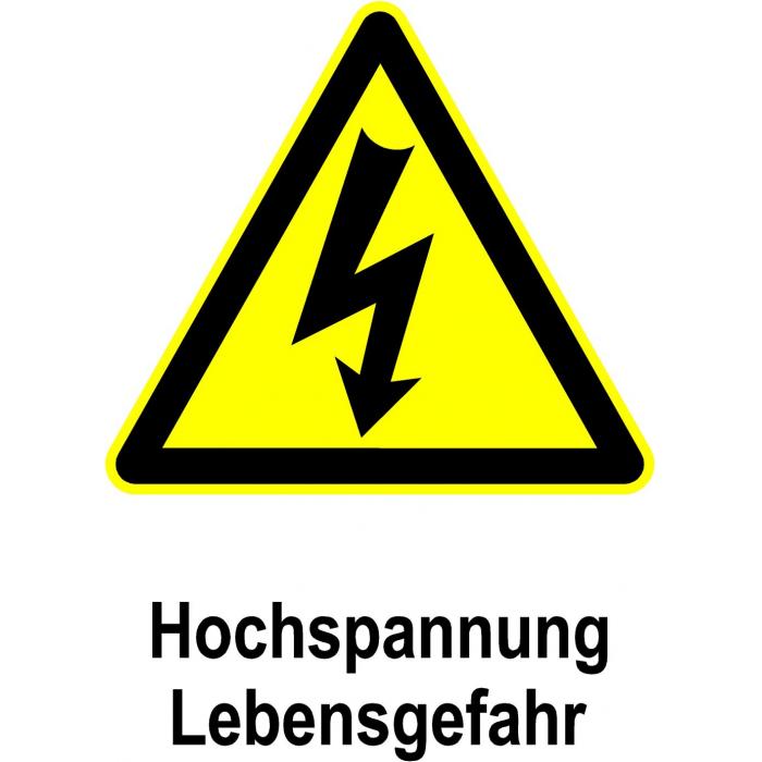 - das Warnschild "Hochspannung Lebensgefahr " ist im Innen- und Außenbereich einsetzbar