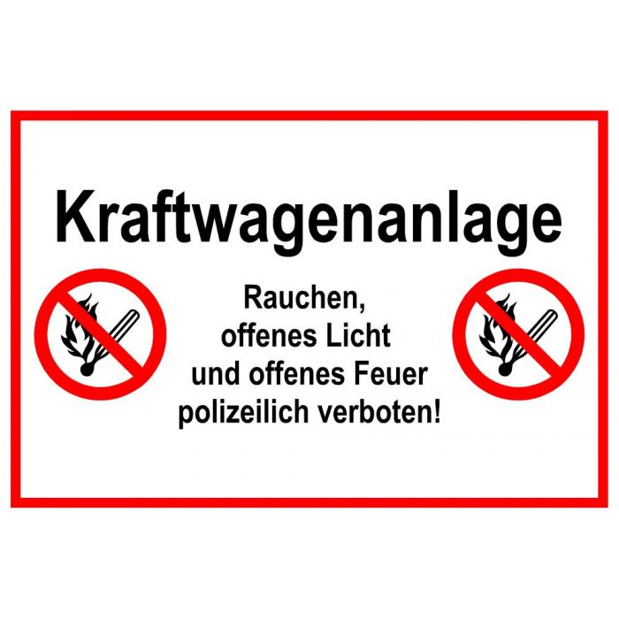 - das Warnschild "Kraftwagenanlage" ist im Innen- und Außenbereich einsetzbar