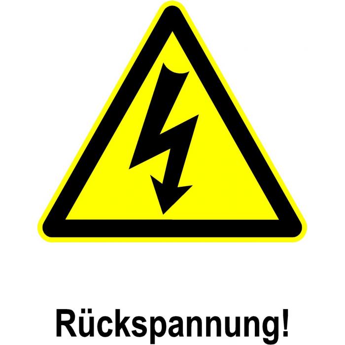 - das Warnschild "Rückspannung!" ist im Innen- und Außenbereich einsetzbar
