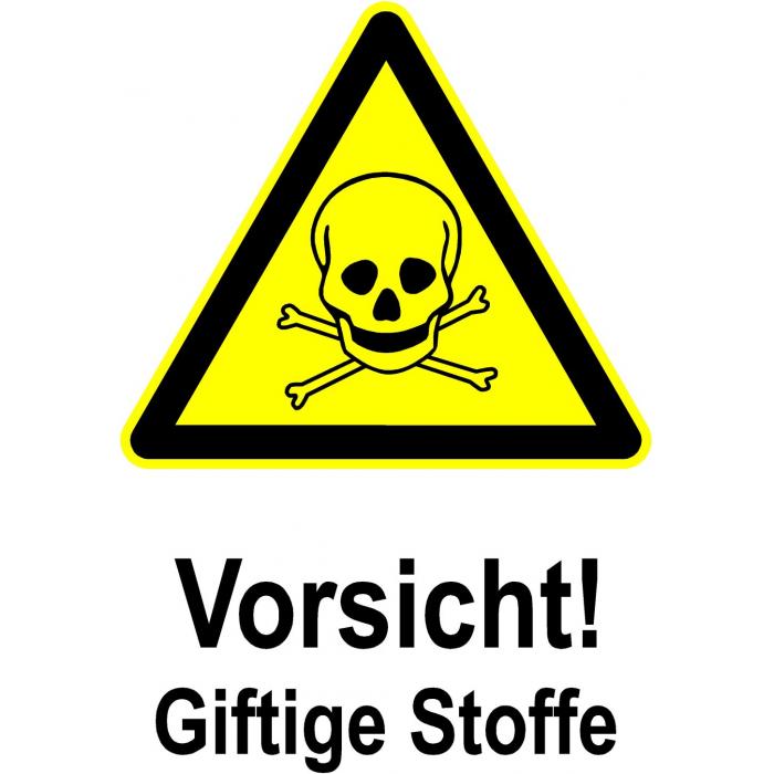 - das Warnschild "Vorsicht! Giftige Stoffe" ist im Innen- und Außenbereich