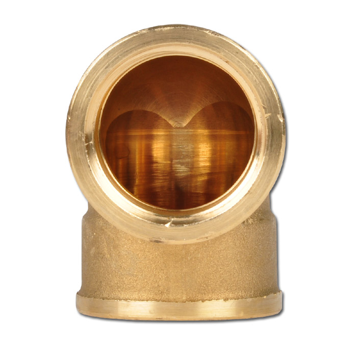 - Das Winkelstück ist aus Messing gefertigt und mit zwei gleich großen, zylindrischen Innengewinden versehen.