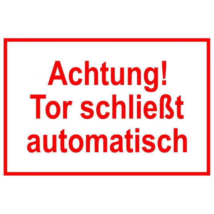 - das Zufahrts und Zutrittsschild "Achtung! Tor schließt automatisch" ist im Innen- und Außenbereich einsetzbar
