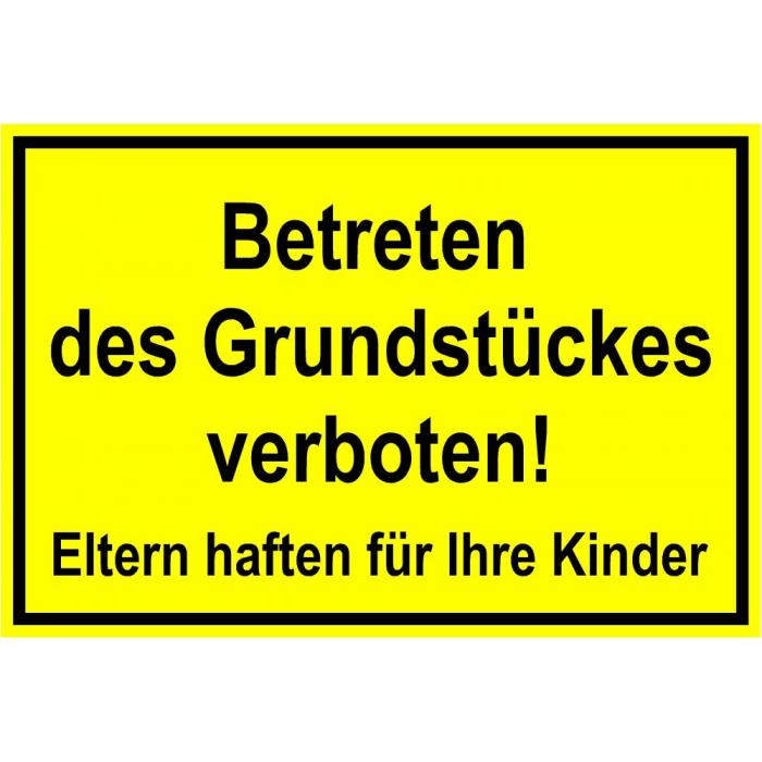 - das Zufahrts und Zutrittsschild "Betreten des Grundstückes verboten! Eltern haften für Ihre Kinder" ist im Innen- und Außenbereich einsetzbar