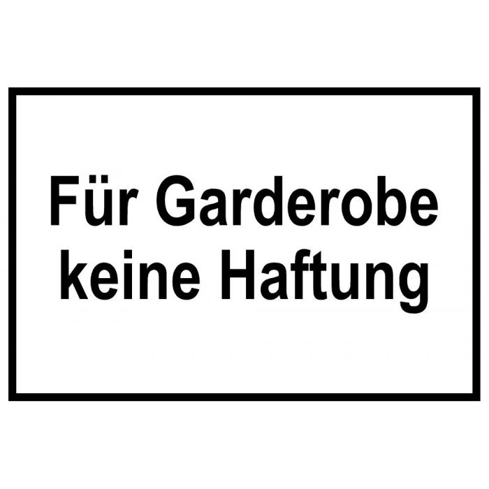 - das Zufahrts und Zutrittsschild "Für Gaderobe keine Haftung" ist im Innen- und Außenbereich einsetzbar
