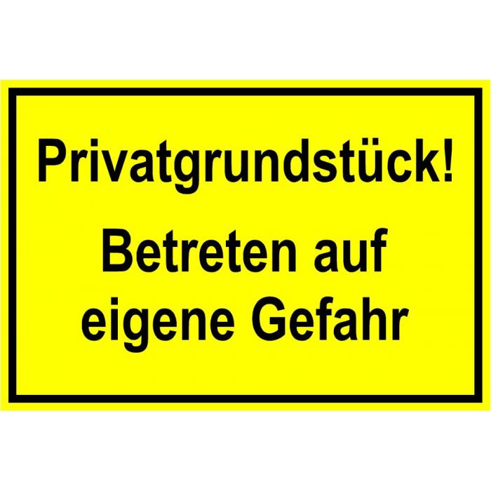 Zufahrts und Zutrittsschild "Privatgrundstück! Betreten auf eigene Gefahr"